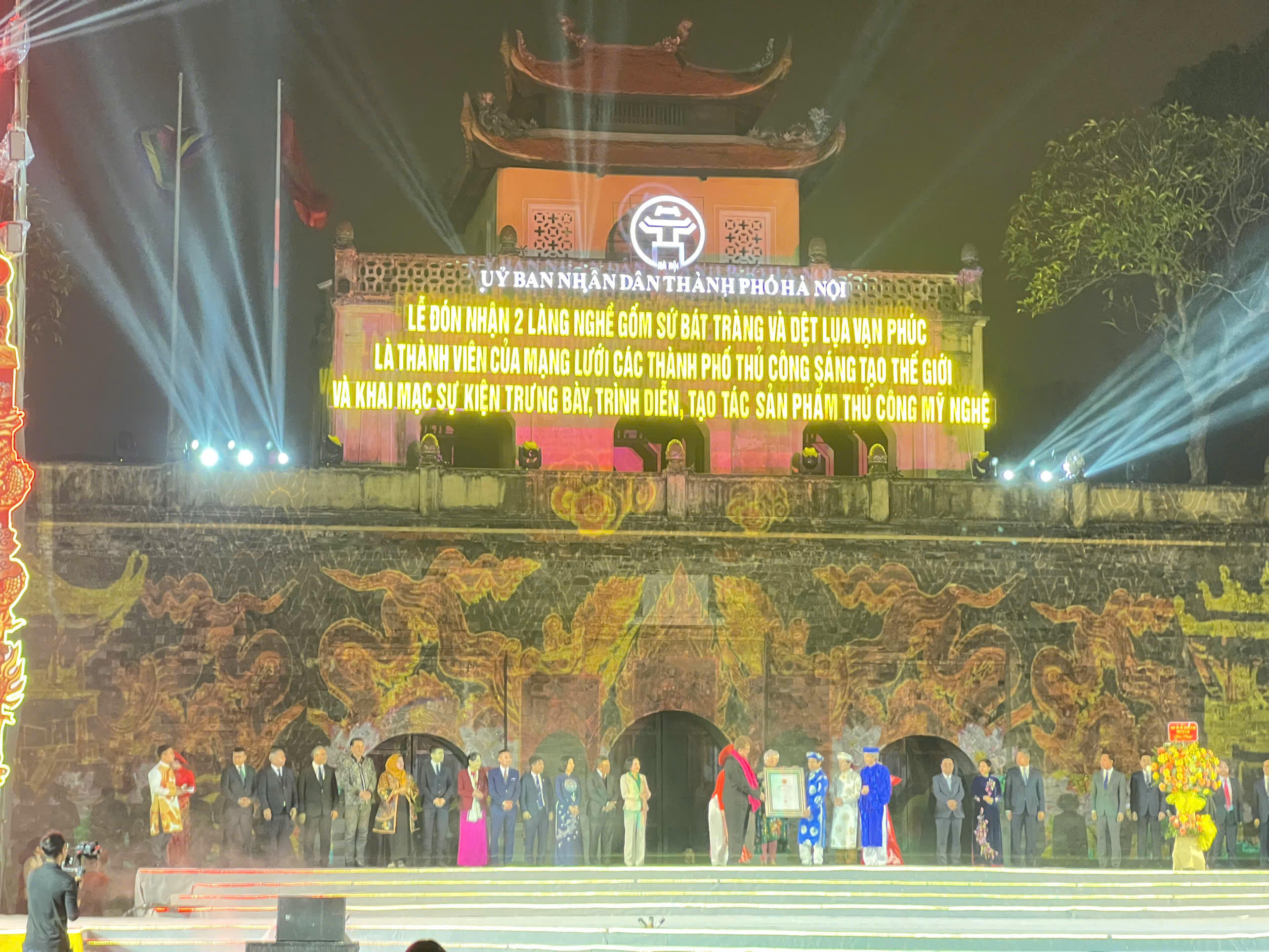 Tối 14/2, tại Hoàng Thành Thăng Long (Hà Nội), UBND TP Hà Nội tổ chức Lễ đón nhận làng nghề gốm sứ Bát Tràng và dệt lụa Vạn Phúc là thành viên của Mạng lưới các thành phố thủ công sáng tạo thế giới.