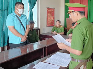 Đối tượng Bảo nghe đọc lệnh bắt tạm giam - Ảnh CACC. |