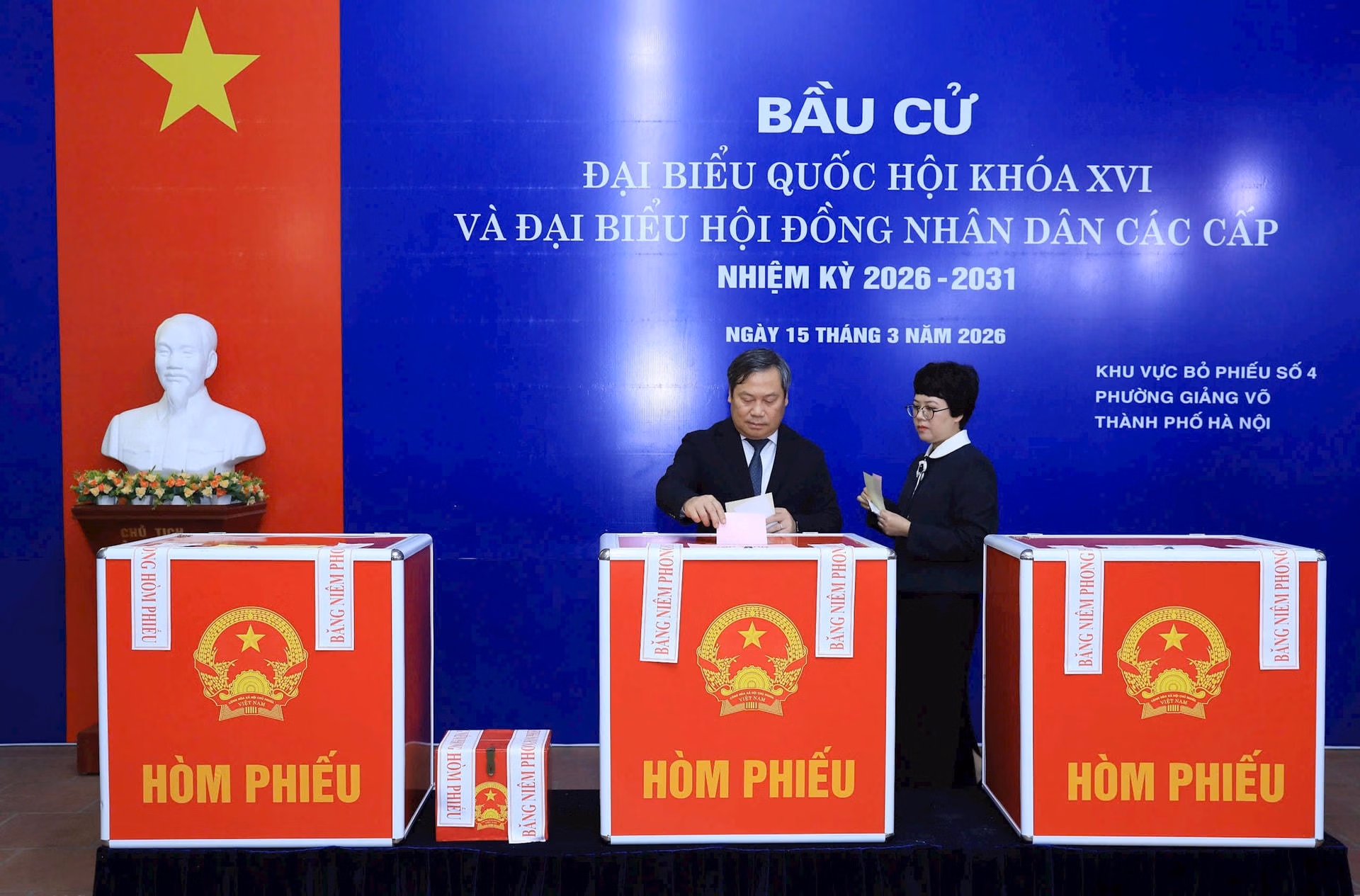 Trong khi đó, Ủy viên Trung ương Đảng, Phó Bí thư Thành ủy, Chủ tịch UBND TP Hà Nội Vũ Đại Thắng đã tham gia bỏ phiếu bầu cử đại biểu Quốc hội khóa XVI và đại biểu HĐND các cấp nhiệm kỳ 2026-2031 tại Khu vực bỏ phiếu số 4, phường Giảng Võ.