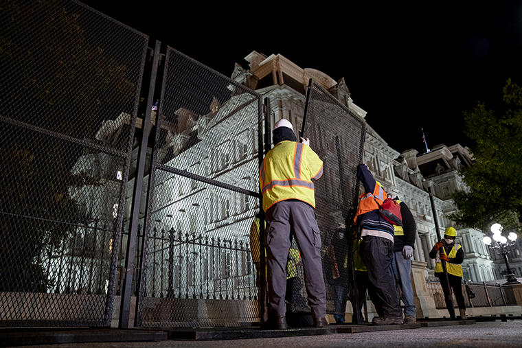 Hàng rào bao quanh Nhà Trắng được dựng lên trong đêm. Các nhà chức trách cho biết hiện tại không có mối đe dọa nào đáng kể, nhưng họ muốn đề phòng mọi trường hợp xấu hơn có thể xảy ra vào tối nay hoặc trong những ngày tới, CNN đưa tin.