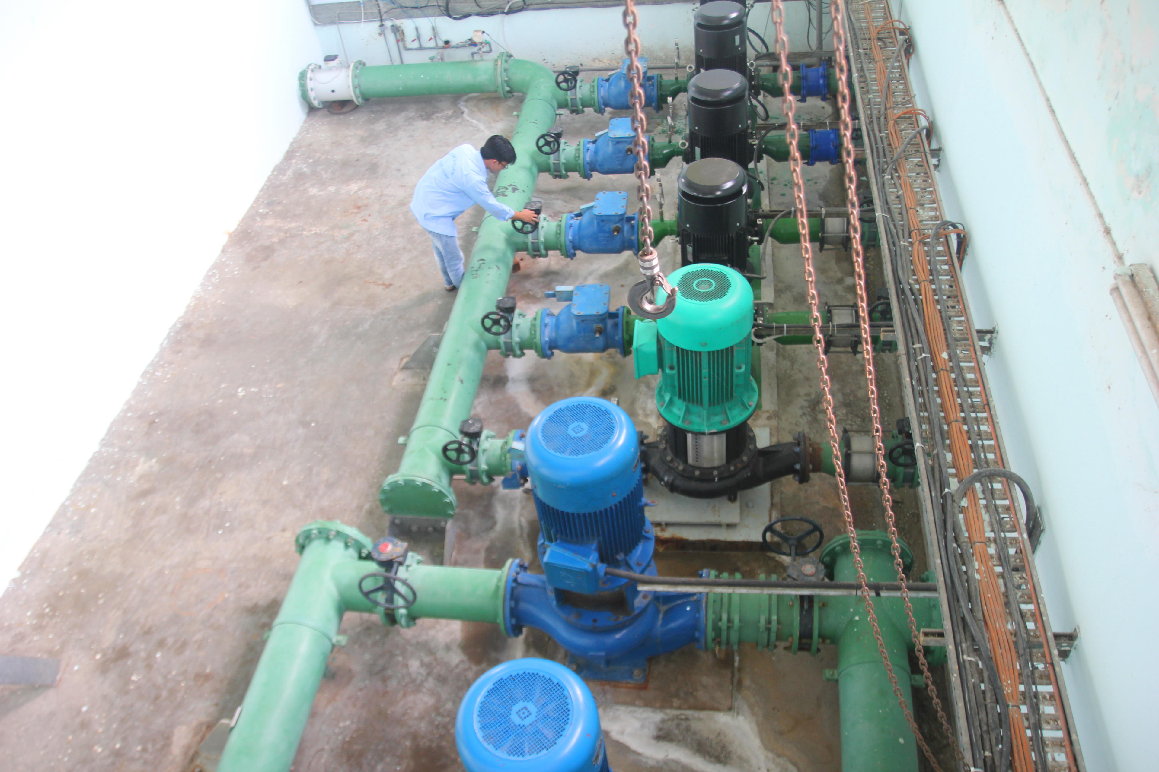 | Hệ thống vận hành trạm bơm cấp 2 tại nhà máy xử lý số 1 của Công ty BAWACO Bạc Liêu. |