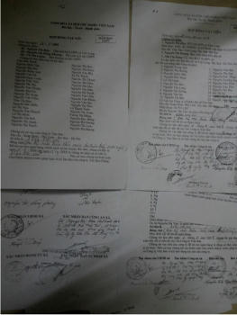 Đơn cử, tại hai hợp đồng vay tiền ngày 20/11 và ngày 6/12/2007 giữa bà Hậu với đại diện Cty Vân Sơn thì Phó Chủ tịch UBND Nguyễn Viết Lãng và Trưởng Công an xã Việt Long Nguyễn Tiến Quyết đều đóng con dấu và ký xác nhận.