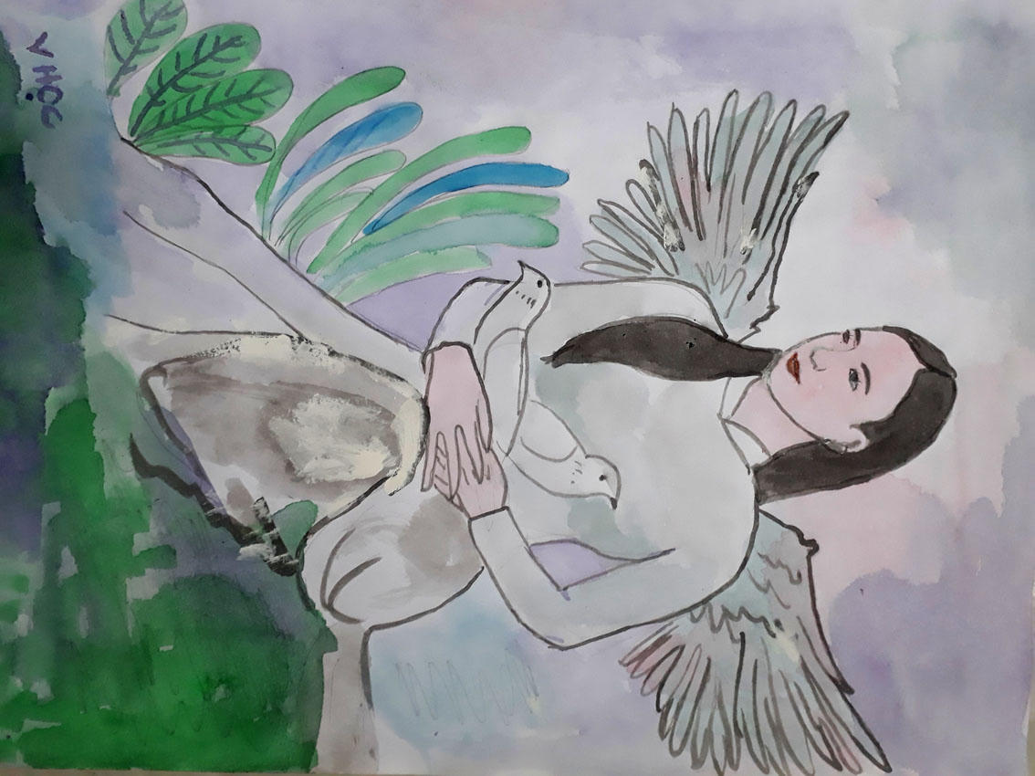 Bà Nhường hoảng hốt bảo cháu hãy giấu đôi cánh đi, ăn mặc cho tử tế kẻo mà người làng nhìn thấy. Diệp Vân lúc lắc cái đầu, nói vâng. Cô làm nũng bà. “Cháu chỉ chơi với đôi cánh một chút thôi. Tại cháu thấy nó đặc biệt”...