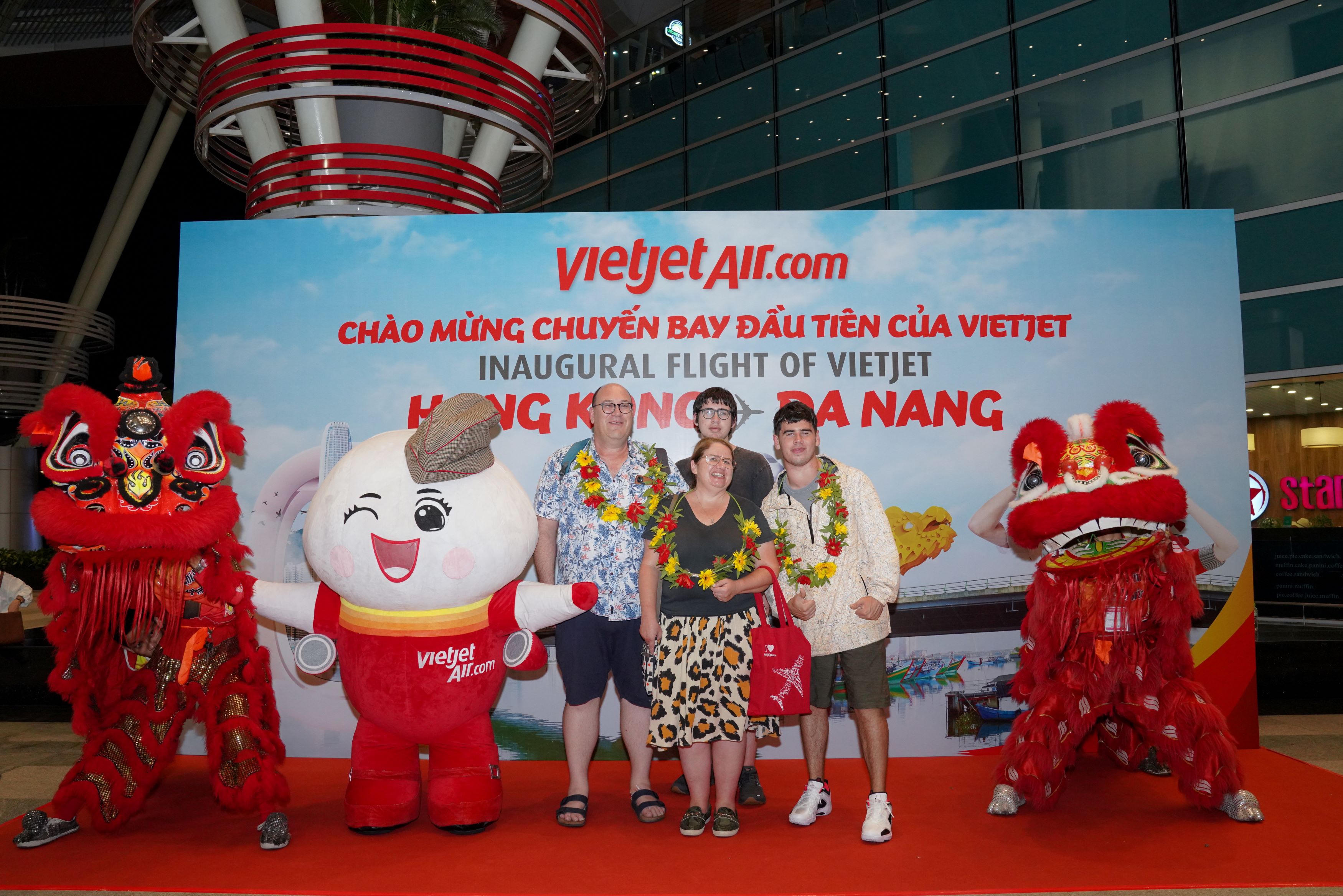 Những hành khách đầu tiên trên các chuyến bay kết nối Phú Quốc, Đà Nẵng và Hồng Kông được chào đón nồng nhiệt bởi người dân, lãnh đạo các thành phố, cảng hàng không.