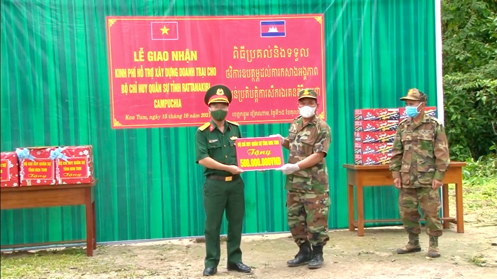 Thay mặt Bộ CHQS tỉnh Kon Tum, Đại tá Đỗ Văn Thương, Phó Chỉ huy trưởng Bộ CHQS tỉnh Kon Tum đã trao số tiền nói trên cho đại diện Bộ CHQS tỉnh Ratanakiri và cho rằng số tiền này chưa phải là nhiều so với nhu cầu hiện nay của bạn nhưng đây là tình cảm của cán bộ, chiến sĩ Bộ CHQS tỉnh Kon Tum trao tặng để Bộ CHQS tỉnh Ratanakiri có thêm một phần kinh phí trong xây dựng, sửa chữa doanh trại đáp ứng nhu cầu làm việc và sinh hoạt của cán bộ, chiến sĩ LLVT tỉnh Ratanakiri.