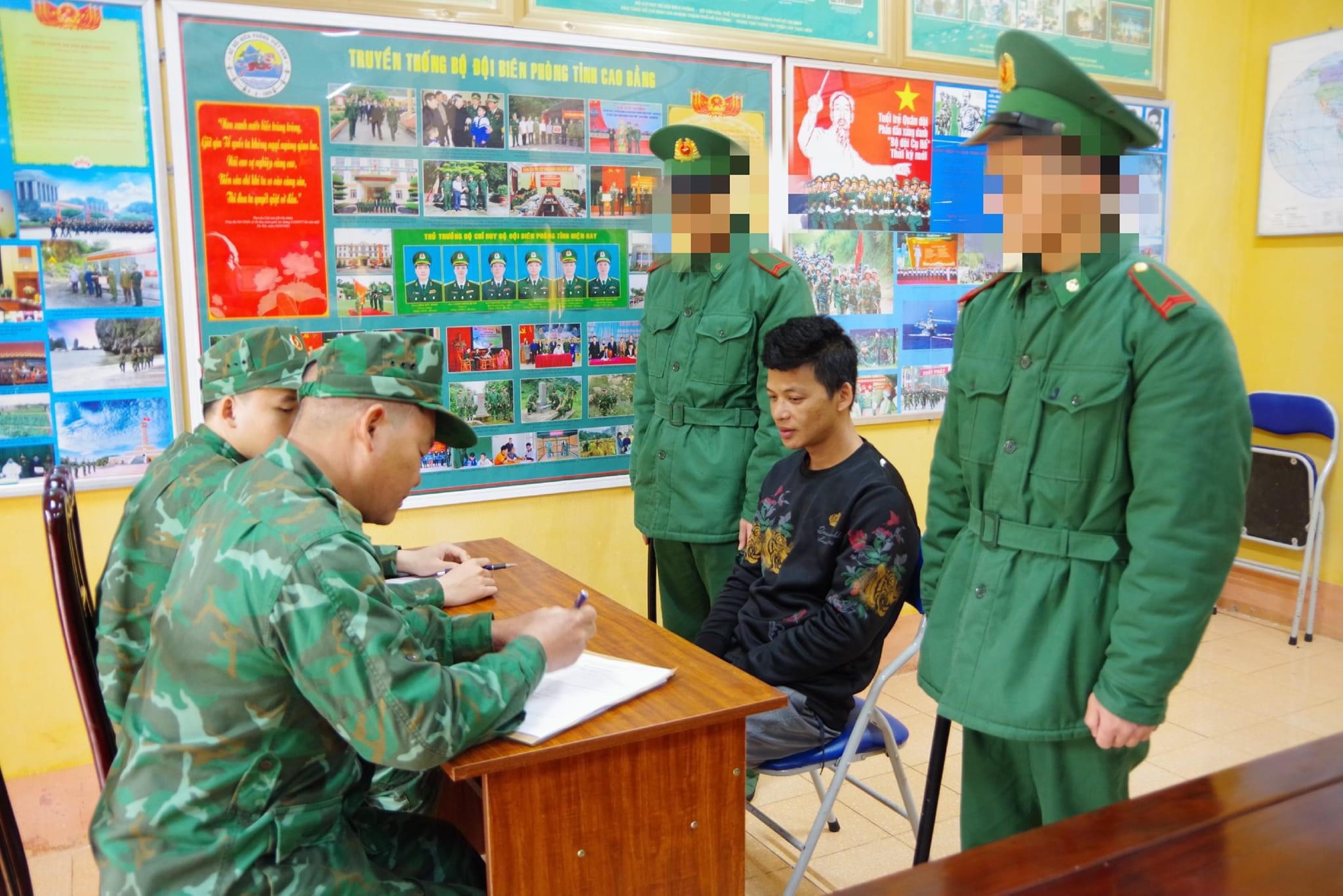 Lực lượng Biên Phòng lấy lời khai của đối tượng bị bắt (Ảnh: BĐBP Cao Bằng) |