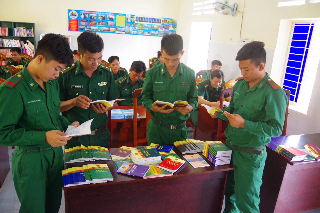 Cán bộ, chiến sỹ Hải đội 2, BĐBP Sóc Trăng tìm hiểu các loại sách pháp luật tại đơn vị |