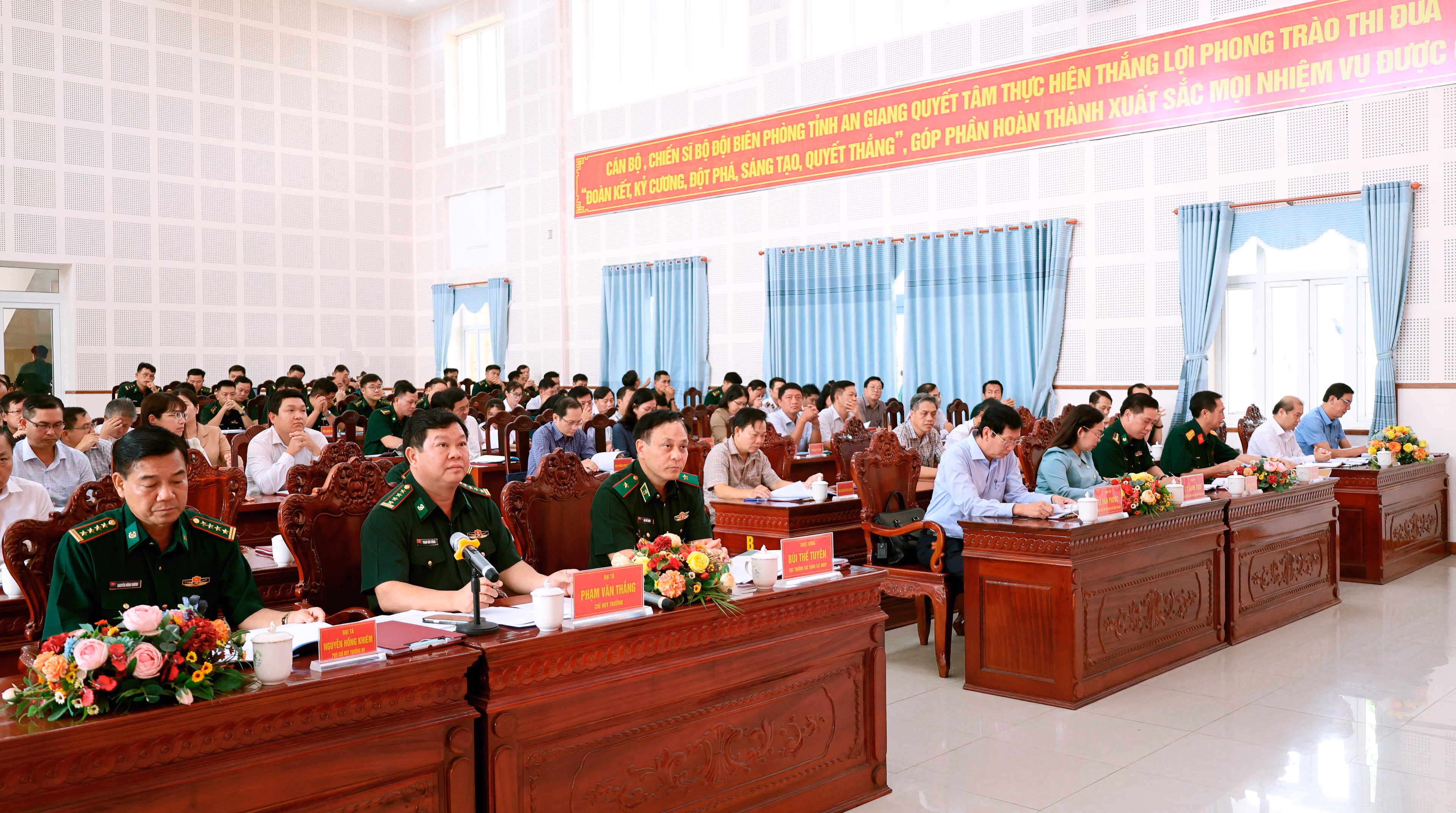 Chiều 15/4, Ban Chỉ huy BĐBP tỉnh An Giang tổ chức Hội nghị rút kinh nghiệm hoạt động của tổ chức quân sự địa phương khi thực hiện hệ thống chính quyền địa phương hai cấp. Đại tá Phạm Văn Thắng, Chỉ huy trưởng Ban Chỉ huy Bộ đội Biên phòng tỉnh chủ trì hội nghị.