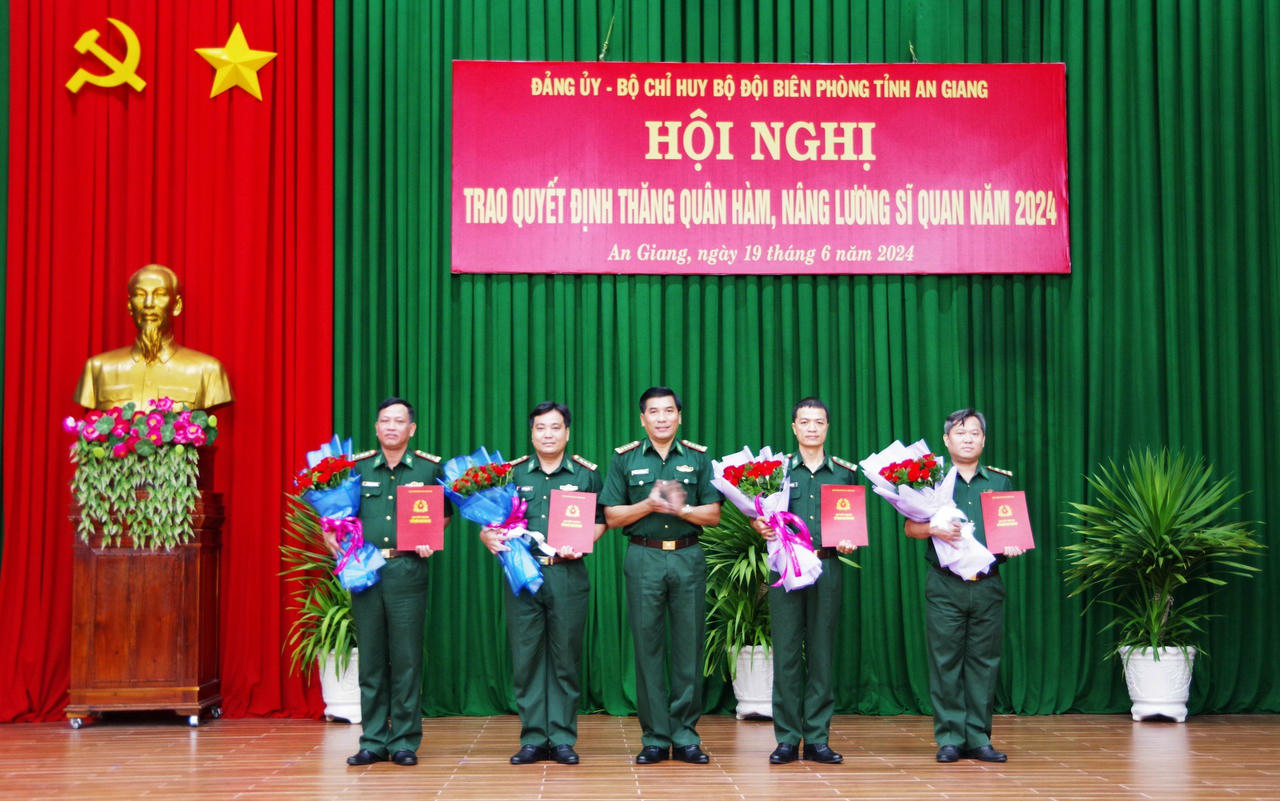 Cũng trong sáng nay, Đảng ủy, Bộ Chỉ huy Bộ đội Biên phòng (BĐBP) tỉnh An Giang đã tổ chức trao quyết định thăng quân hàm, nâng lương sĩ quan năm 2024 cho 4 quân nhân.