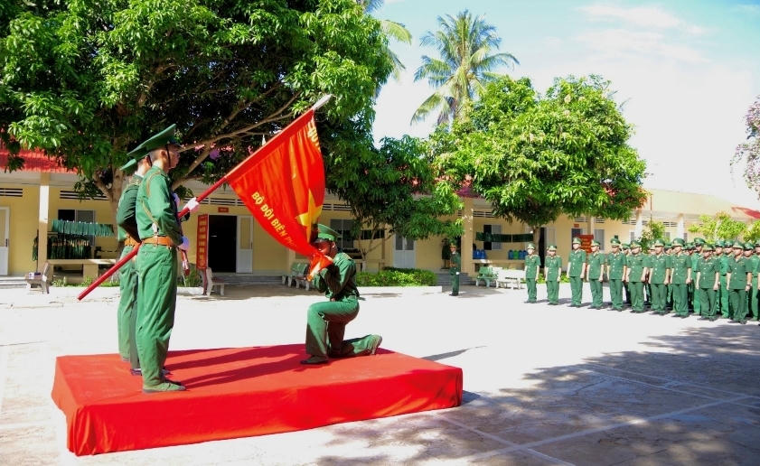 Chiến sĩ mới BĐBP tỉnh An Giang tuyên thệ trước Quân kỳ. |