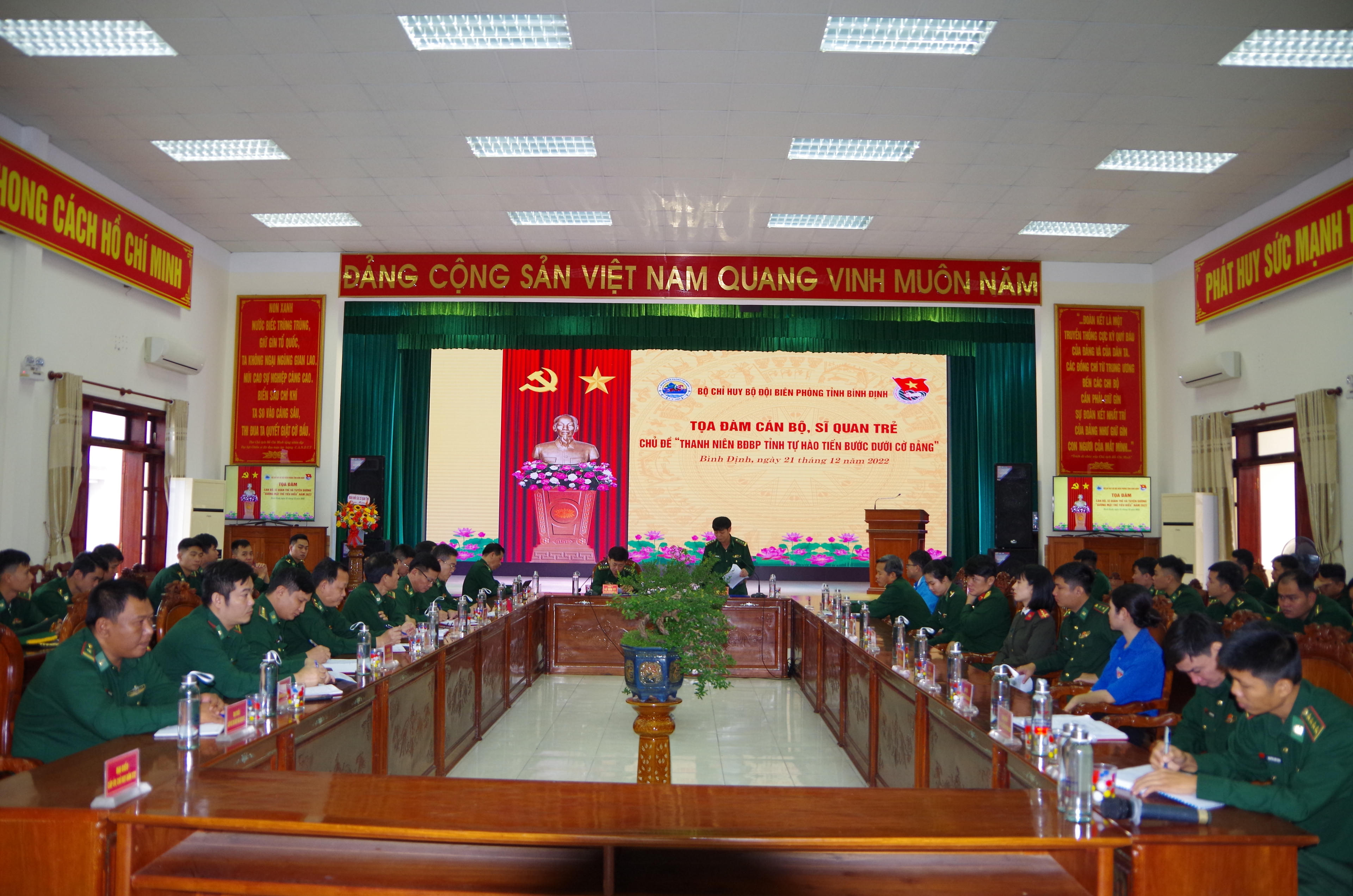 (PLVN) - Nhân kỷ niệm 78 năm Ngày thành lập Quân đội Nhân dân Việt Nam (22/12/1944 - 22/12/2022); 33 năm Ngày hội Quốc phòng toàn dân (22/12/1989 - 22/12/2022), Bộ Chỉ huy BĐBP tỉnh Bình Định đã tổ chức tọa đàm cán bộ, sĩ quan trẻ và tuyên dương "Gương mặt trẻ tiêu biểu" năm 2022 với chủ đề “ Thanh niên BĐBP tỉnh tự hào tiến bước dưới cờ Đảng”.