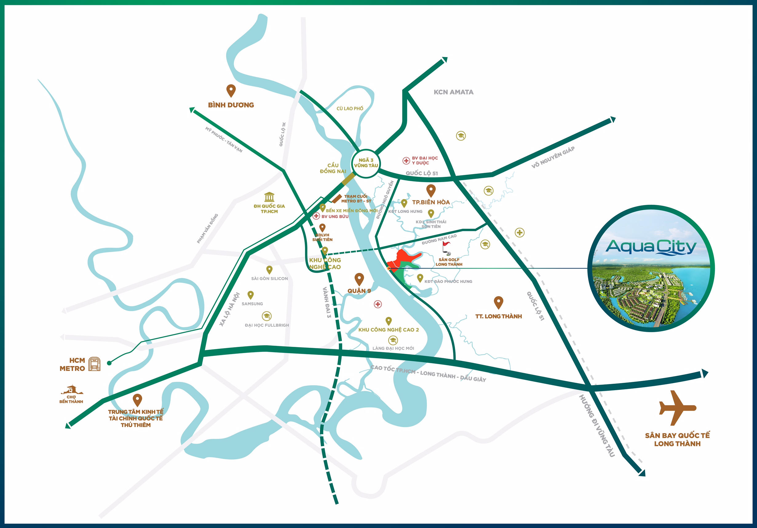 Thừa hưởng lợi thế tứ hạ tầng qui hoạch đồng bộ với những dự án trọng điểm kết nối liên vùng như sân bay Long Thành, cao tốc Bến Lức – Long Thành, Vành đai 3... và đặc biệt là đường Hương Lộ 2 kết nối quốc lộ 51 vào cao tốc Long Thành Dầu Giây hình thành, khoảng cách từ dự án về TP.HCM sẽ càng rút ngắn đáng kể.