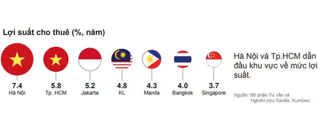 Trong đó, theo nghiên cứu của Savills, lợi suất căn hộ cho thuê tại Hà Nội đạt mức 7,4% vượt TP. HCM khi chỉ ở mức 5,8%.