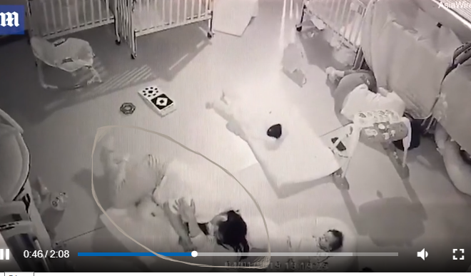 (PLVN) - Hôm 1/4, một giáo viên tại trung tâm trông giữ trẻ We Care Baby thuộc quận Neihu, thành phố Đài Bắc, Đài Loan (Trung Quốc), bị tố cáo lấy thân đè lên người bé trai khi bé đang nằm úp mặt trên sàn nhà.