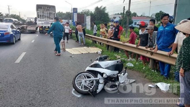 Vụ va chạm khiến 3 mẹ con chị Thủy ngã xuống đường. Bé gái 10 tuổi ngồi sau ngã ra ngoài nên bị bánh xe tải cán tử vong, 2 mẹ con ngồi trước ngã vào trong nên bị trầy xước nhẹ, được người dân đưa đi sơ cứu.