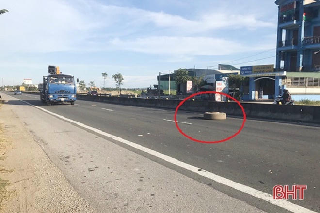 Khi lưu thông qua địa phận xã Thạch Kênh (huyện Thạch Hà, tỉnh Hà Tĩnh), chiếc bánh dự phòng của container bất ngờ rơi khỏi gầm, lăn xuống đường. Sự cố làm bánh xe phía sau của container chèn lên khiến phương tiện này chao đảo.