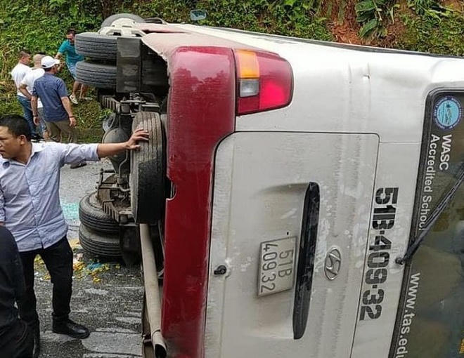 Khoảng 14h, xe khách BKS 51B-409.32 bị lật ngang tại km 125+600 trên quốc lộ 4D đoạn qua xã Tòng Sành, huyện Bát Xát, tỉnh Lào Cai.