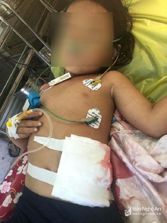 Báo Nghệ An đưa tin, thấy bụng cháu chảy nhiều máu, đứt hai đoạn ruột, vì quá hoảng nên ông Chống đã lấy kim chỉ khâu quần áo khâu bụng cháu lại mới rồi đưa xuống Trung tâm Y tế huyện Kỳ Sơn cấp cứu.