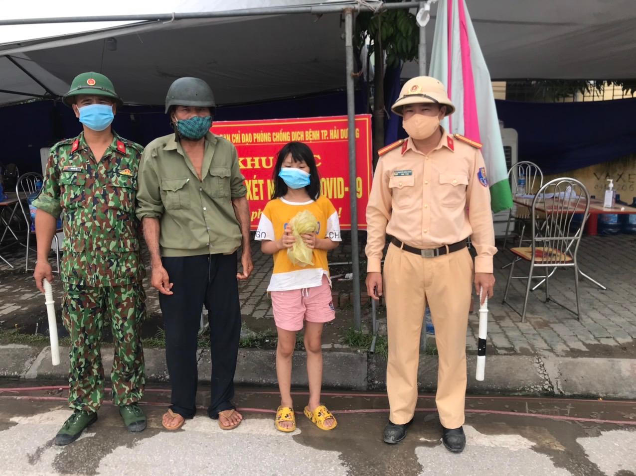 Theo đó, vào hồi 13h30’ ngày 15/9, tại chốt kiểm soát dịch COVID-19 A08 (Km50+700 QL5 lối cầu Hàn đi huyện Nam Sách, Hải Dương), Thiếu tá Nguyễn Minh Tân (cán bộ Phòng Cảnh sát giao thông Công an tỉnh Hải Dương) trong quá trình thực hiện nhiệm vụ tại chốt trên đã phát hiện thấy một bé gái khoảng 9-10 tuổi có biểu hiện đi lạc, mệt mỏi và đang ngơ ngác tìm đường.