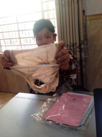 Ngày cuối tuần tháng 4/2015, chị T đón cháu Q chở đi chơi. Đến chiều ngày 12/4/2015, chị đưa con về lại cho con gái đi học. Trong lúc vào phòng ngủ chung của chồng với con gái để thu dọn quần áo bẩn mang giặt, chị T phát hiện chiếc quần của con dính máu, màu xẫm đen đã nhiều ngày.