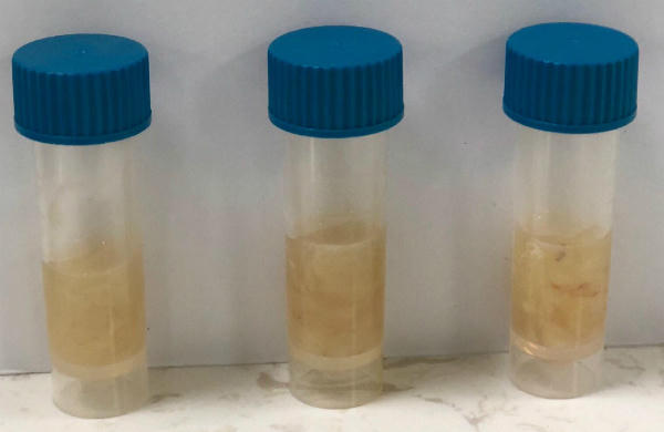 Dịch màng phổi dẫn lưu và xét nghiệm của bệnh nhi đầy mủ. Ảnh bệnh viện cung cấp. |