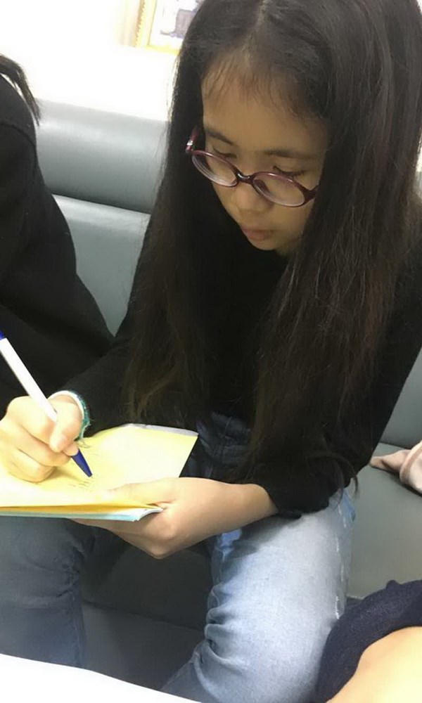Trong ảnh, Mai An (11 tuổi) đang điền vào tờ đăng ký. Mai An đánh dấu vào các ô thận, tụỵ, gan, xương… rồi dừng lại ngần ngừ rất lâu ở ô ghi chữ tim.