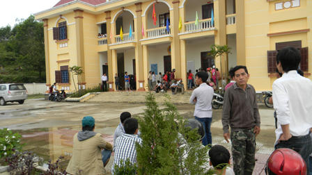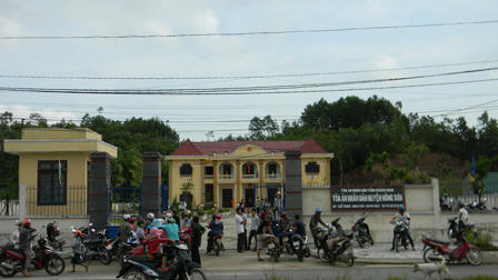 Ngày 23/4, TAND huyện mở phiên sơ thẩm. Từ sáng sớm, hàng trăm người dân bỏ cả công việc đồng áng để đến Tòa tìm chỗ ngồi theo dõi. Thấy bà con ùa vào phòng xử án quá nhiều, phía bên ngoài hành lang, trước sân tòa cũng chật cứng người nên cán bộ Tòa thông báo “xử kín”.