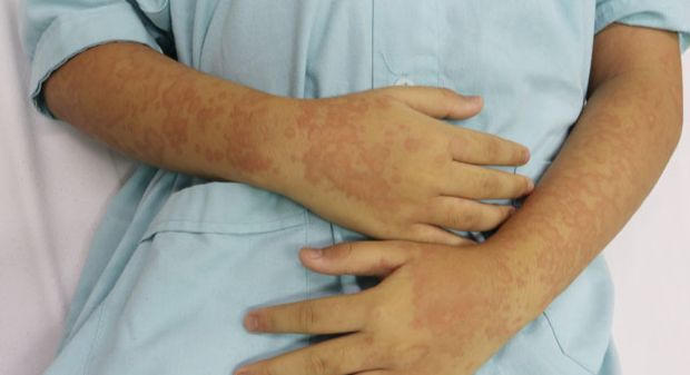 Gia đình bệnh nhi kể lại, tối 29/7, trẻ có ăn con cù kỳ. Đến khoảng 4h ngày 30/7, trẻ thấy ngứa khắp người và ban đỏ toàn thân. Gia đình cho trẻ uống thuốc dị ứng nhưng không đỡ mà ban nổi ngày càng nhiều và sẩn ngứa nhiều hơn. Sau đó gia đình mới đưa trẻ vào viện. Trước đó trẻ chưa có tiền sử dị ứng.
