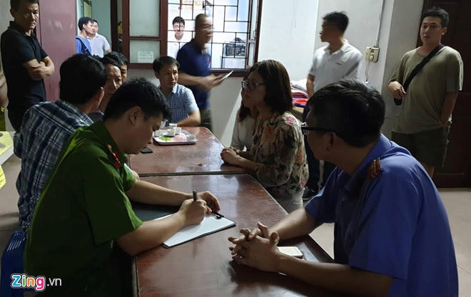Lúc 22h20, Công an quận Cầu Giấy và đại diện VKSND cùng cấp làm việc với gia đình nạn nhân, Chủ tịch HĐQT nhà trường. Khu vực làm việc ngay tại Nhà tang lễ Bệnh viện E. Người thân cháu bé tụ tập trước sân Nhà tang lễ, gào khóc. Cảnh sát đã phong tỏa nơi đây, chỉ cho người nhà chứng kiến cuộc làm việc.