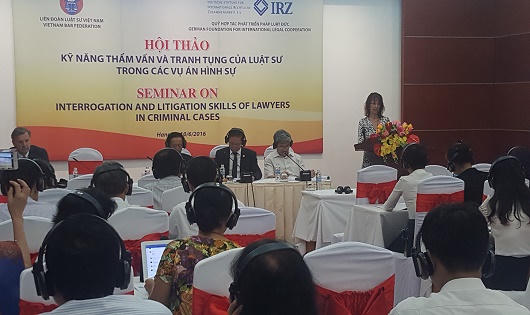 (PLO) - LS Otmar Kury – Chủ tịch Đoàn LS Hanseatic tại Hamburg (Đức) chia sẻ quan điểm với các đồng nghiệp Việt Nam tại Hội thảo “Kỹ năng thẩm vấn và tranh tụng của luật sư trong các vụ án hình sự” do Liên đoàn Luật sư Việt Nam phối hợp với Quỹ hợp tác phát triển pháp luật Đức (IRZ) tổ chức sáng nay (9/6).