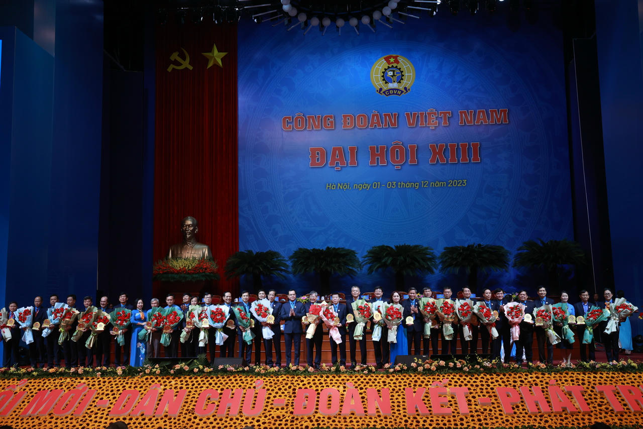Theo đó, Ủy viên Ban Chấp hành Trung ương Đảng, Đại biểu Quốc hội khóa XV, Bí thư Đảng đoàn, Chủ tịch Tổng Liên đoàn khóa XII Nguyễn Đình Khang tiếp tục được tín nhiệm bầu giữ chức Chủ tịch Tổng Liên đoàn Lao động Việt Nam khóa XIII, nhiệm kỳ 2023-2028. 5 Phó Chủ tịch gồm: ông Phan Văn Anh, ông Ngọ Duy Hiểu; bà Thái Thu Xương; ông Huỳnh Thanh Xuân; ông Nguyễn Sinh Hùng.
