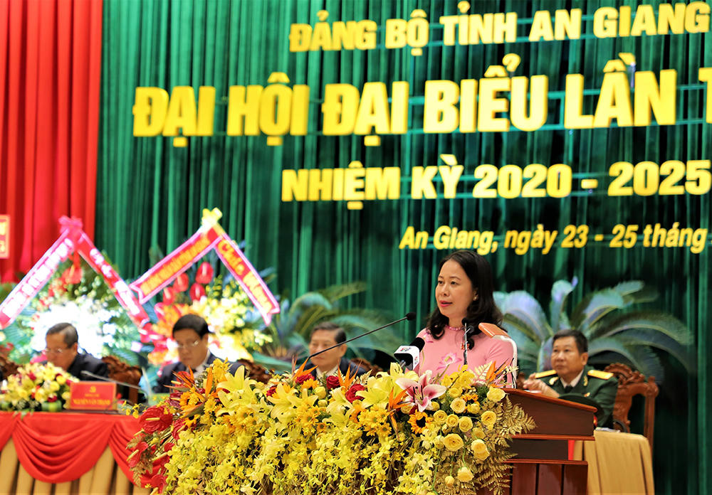 Phát biểu bế mạc Đại hội, thay mặt Ban chấp hành Đảng bộ Tỉnh An Giang, Đồng chí Võ Thị Ánh Xuân – Bí thư Tỉnh ủy tỉnh An Giang nhấn mạnh thành công của Đại hội hôm nay là động lực cổ vũ mạnh mẽ Đảng bộ, Quân và Dân An Giang phát huy đoàn kết, tranh thủ thời cơ, vượt qua thách thức, tiếp tục đổi mới toàn diện và mạnh mẽ hơn nữa, phấn đấu đưa An Giang phát triển nhanh và bền vững, phấn đấu phát triển kinh tế của An Giang nằm trong nhóm đầu khu vực Đồng bằng sông Cửu Long.