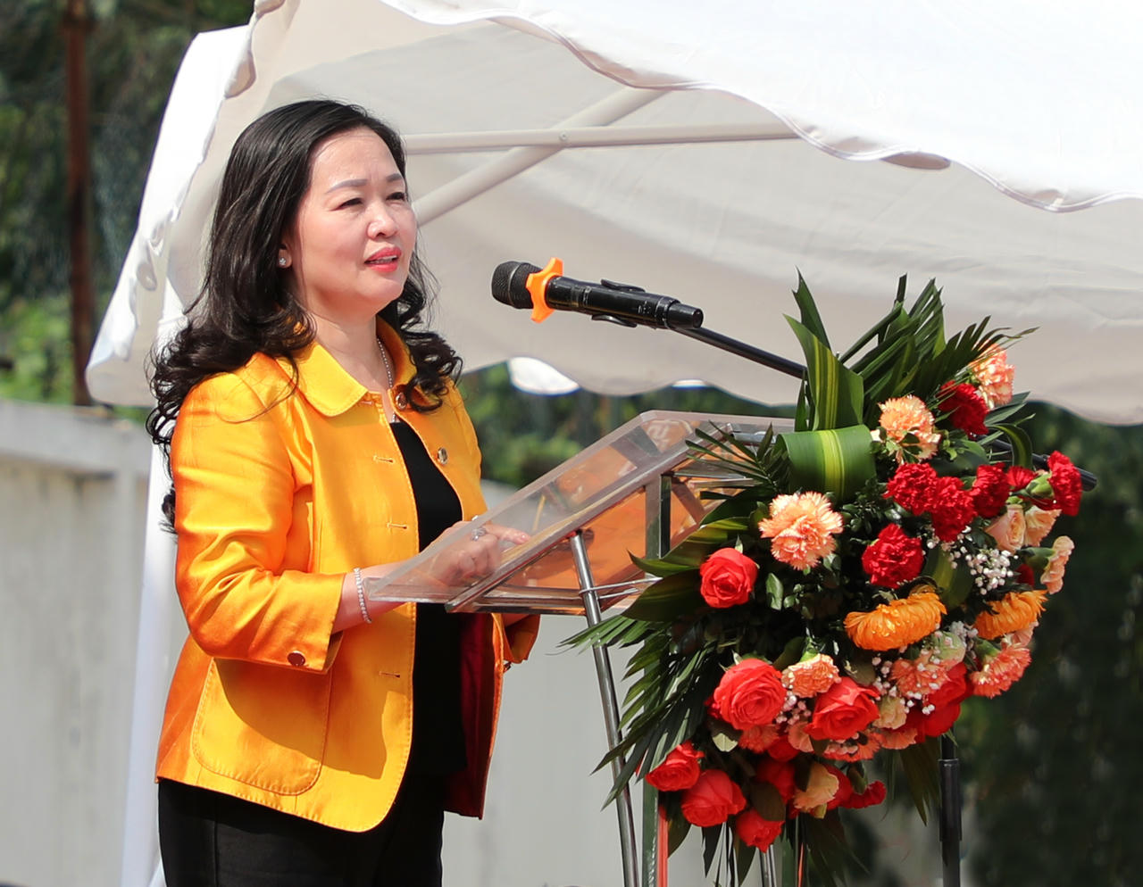 Bí thư Đảng ủy, Tổng Biên tập Báo Đại biểu Nhân dân Phạm Thị Thanh Huyền - Trưởng ban Tổ chức Giải phát biểu. Ảnh: Khánh Duy