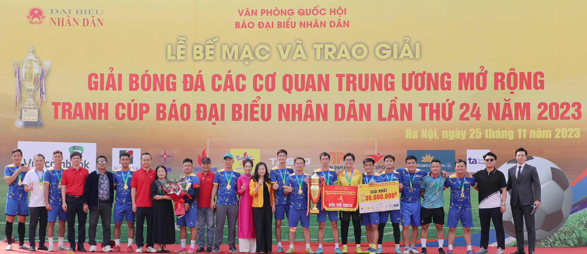 Tại Lễ bế mạc, Tổng Thư ký Quốc hội, Chủ nhiệm Văn phòng Quốc hội Bùi Văn Cường đã trao huy chương Vàng và Cúp vô địch cho đội bóng Vietnam Airlines. Phó Chủ nhiệm Văn phòng Quốc hội Phạm Đình Toản trao biển giải thưởng; Phó Chủ tịch Công đoàn Ngân hàng CP Ngoại thương Việt Nam (Vietcombank) Ngô Đức Bình trao cờ vô địch và Tổng Biên tập Báo ĐBND, Trưởng Ban tổ chức giải Phạm Thị Thanh Huyền đã tặng hoa chúc mừng đội vô địch.