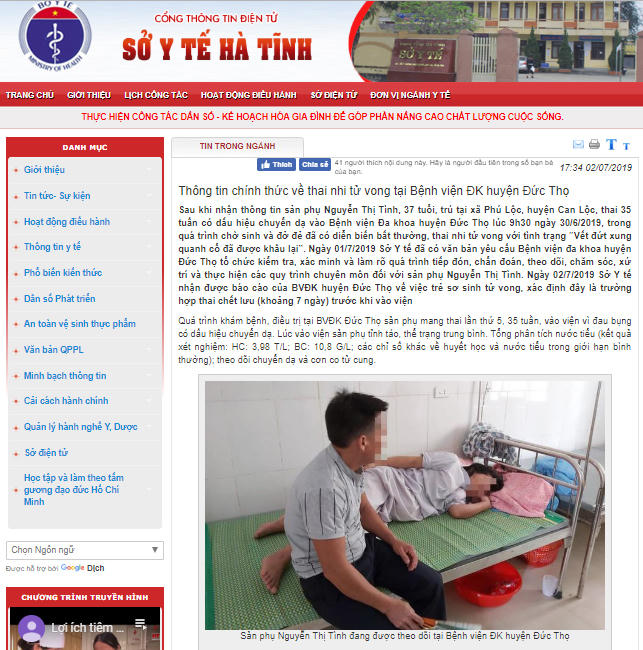 Sở Y tế tỉnh Hà Tĩnh chiều nay thông tin chính thức về vụ thai nhi tử vong tại BVĐK huyện Đức Thọ.