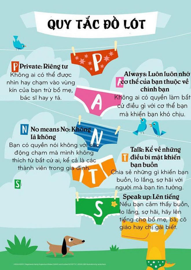 Ngoài quy tắc “5 ngón tay”, Tổ chức chuyên bảo vệ trẻ em tại Anh đã xây dựng một bộ quy tắc được gọi là “Quy tắc đồ lót” để hướng dẫn các phụ huynh giáo dục con tự bảo vệ mình trước những kẻ ấu dâm.