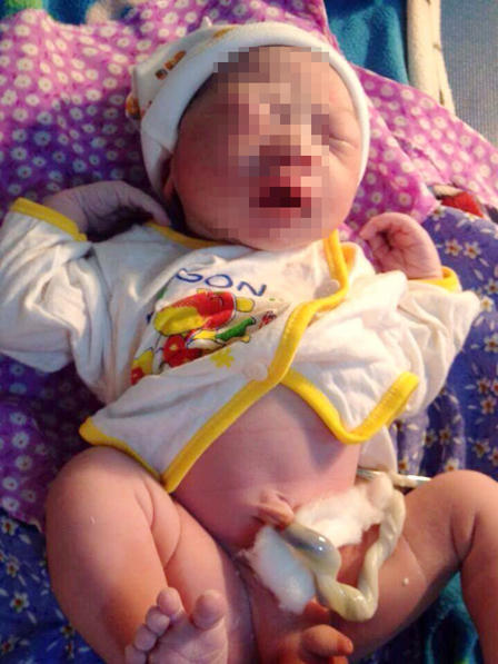 Bé trai đỏ hỏn, chưa cắt rốn bỏ rơi được chăm sóc