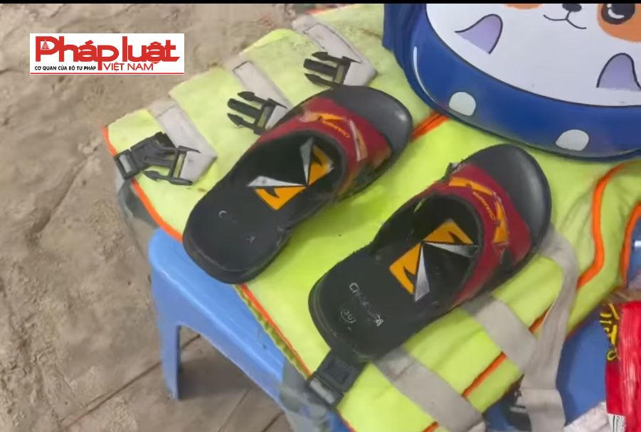 Đôi dép cho là của bé N được phát hiện gần bờ biển (Ảnh Phan Đình Thành) |