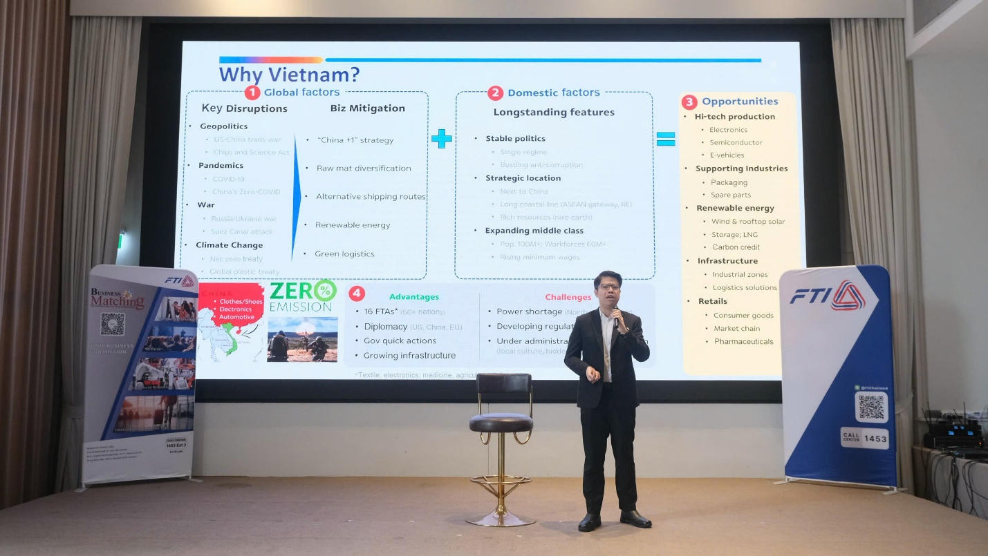 Bên cạnh đó, ông Noppawut - Phó chủ tịch SCGJWD Logistic PCL và ông Tharabodee - Tổng giám đốc Ngân hàng Bangkok bank Việt Nam với kinh nghiệm hoạt động kinh doanh nhiều năm tại Việt Nam đánh giá cao lợi thế, tiềm năng cũng như cung cấp thông tin và những lí do nên đầu tư tại Việt Nam đến với các doanh nghiệp Thái Lan.