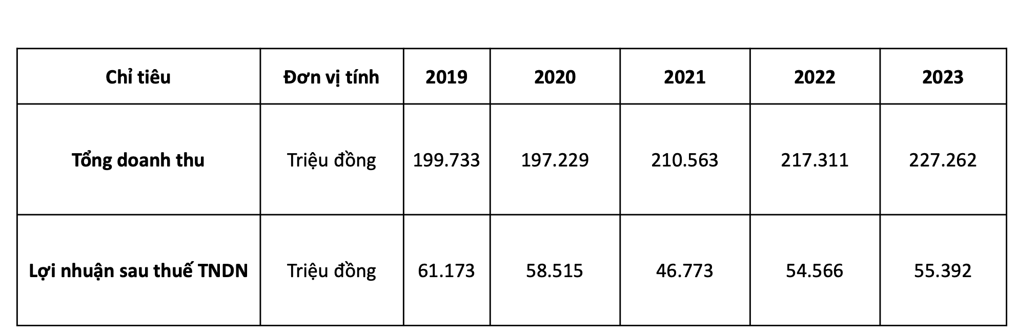 Tuy nhiên, giai đoạn này lợi nhuận sau thuế không tăng đều theo doanh thu. Năm 2023 lợi nhuận sau thuế khoảng 55 tỷ, chưa phục hồi bằng năm 2019 là 61 tỷ. Cụ thể, tổng doanh thu năm 2023 cao hơn 2019 khoảng 28 tỷ nhưng lợi nhuận sau thuế lại thấp hơn khoảng 6 tỷ.
