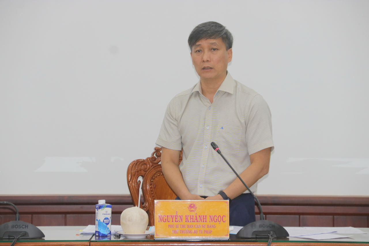 Phát biểu tại buổi làm việc, Thứ trưởng Bộ Tư pháp Nguyễn Khánh Ngọc ghi nhận và đánh giá cao sự nỗ lực và những kết quả đạt được của tư pháp Bến Tre trong thời gian qua. Để đạt được kết quả đó là nhờ sự quan tâm, lãnh chỉ đạo của Tỉnh ủy, UBND tỉnh đồng thời có sự cố gắng, nỗ lực, trách nhiệm của đội ngũ cán bộ làm công tác tư pháp. Theo đó, Thứ trưởng đề nghị Tỉnh ủy, UBND tỉnh Bến Tre tiếp tục quan tâm tạo điều kiện hơn nữa đối với công tác tư pháp. Đồng thời, đẩy mạnh hiệu quả công tác phối hợp giữa các sở, ban, ngành trong tỉnh để thực hiện, nâng cao hiệu quả công tác tư pháp. “Chỉ cần sự phối hợp tốt thì có thể tháo gỡ khó khăn, thúc đẩy hiệu quả công tác tư pháp”, Thứ trưởng nhấn mạnh.