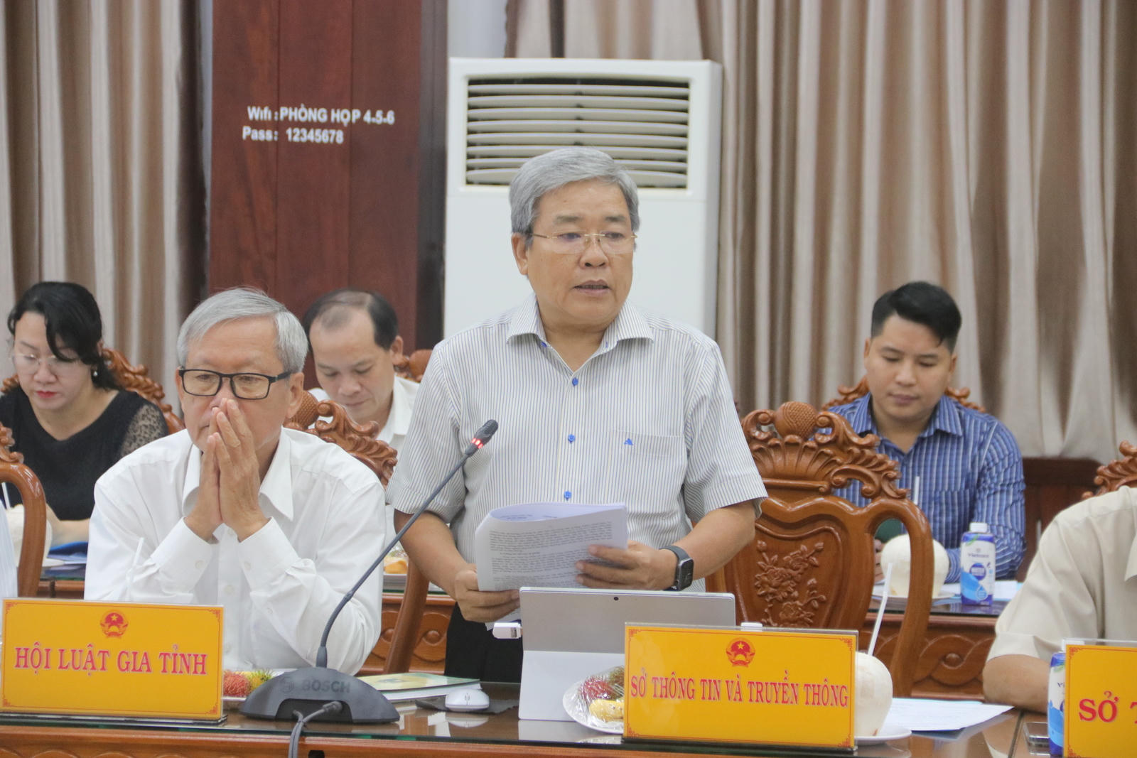 Ông Phạm Đức Dụ - Phó Cục trưởng Cục Công nghệ thông tin (Bộ Tư pháp) trao đổi thông tin với địa phương |