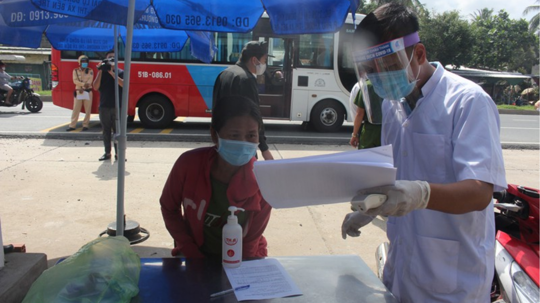 Cơ quan chức năng kiểm tra, rà soát chặt chẽ người, phương tiện ra vào tỉnh tại các điểm chốt kiểm soát dịch. Ảnh: Đông Hà |