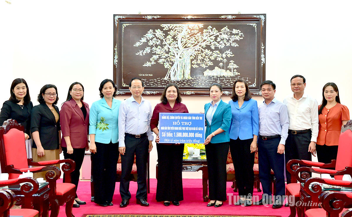 Bày tỏ sự cảm thông sâu sắc, chia sẻ với những mất mát, thiệt hại của Tuyên Quang do cơn bão số 3 gây ra, Quyền Bí thư Tỉnh ủy Bến Tre và đoàn công tác Tỉnh ủy Bến Tre đã trao 1,5 tỷ đồng ủng hộ nhân dân tỉnh Tuyên Quang khắc phục thiệt hại do cơn bão số 3 gây ra.