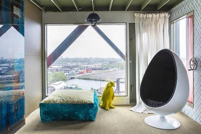 Phải mất tới 4 năm để biến một cần cẩu công nghiệp cũ thành khách sạn VIP Faralda như bây giờ. Nằm trong xưởng thuyền NDSM, quay mặt ra phía sông IJ, khách sạn này cho các du khách một trải nghiệm khó quên ở độ cao 50 m.
