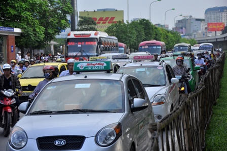 Tại đường Giải Phóng (Hà Nội), tình trạng ùn tắc cũng xuất hiện do lượng người và xe đổ về đây quá đông.