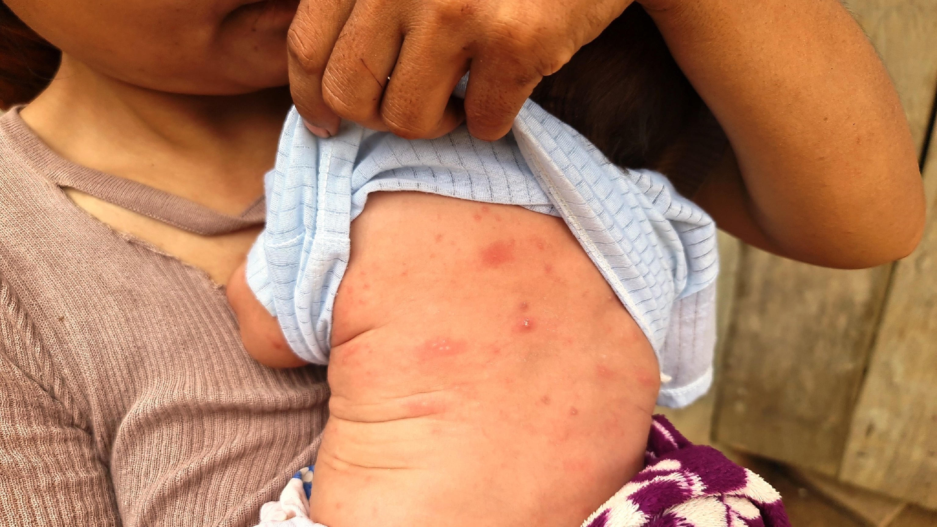 Theo người dân, bệnh ghẻ xuất hiện từ sau Tết Nguyên đán và lây lan nhanh, người trong làng từ lớn đến nhỏ đều gãi cả ngày đêm vì ngứa.