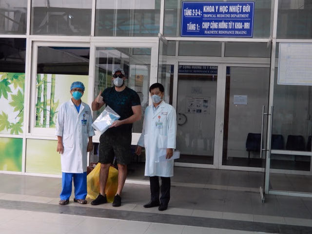 Bệnh nhân cảm ơn các bác sĩ, cảm ơn đất nước Việt Nam đã cứu mình và rất vui vẻ ghi lại khoảnh khắc trước khi rời bệnh viện về nhà tiếp tục cách ly 14 ngày.
