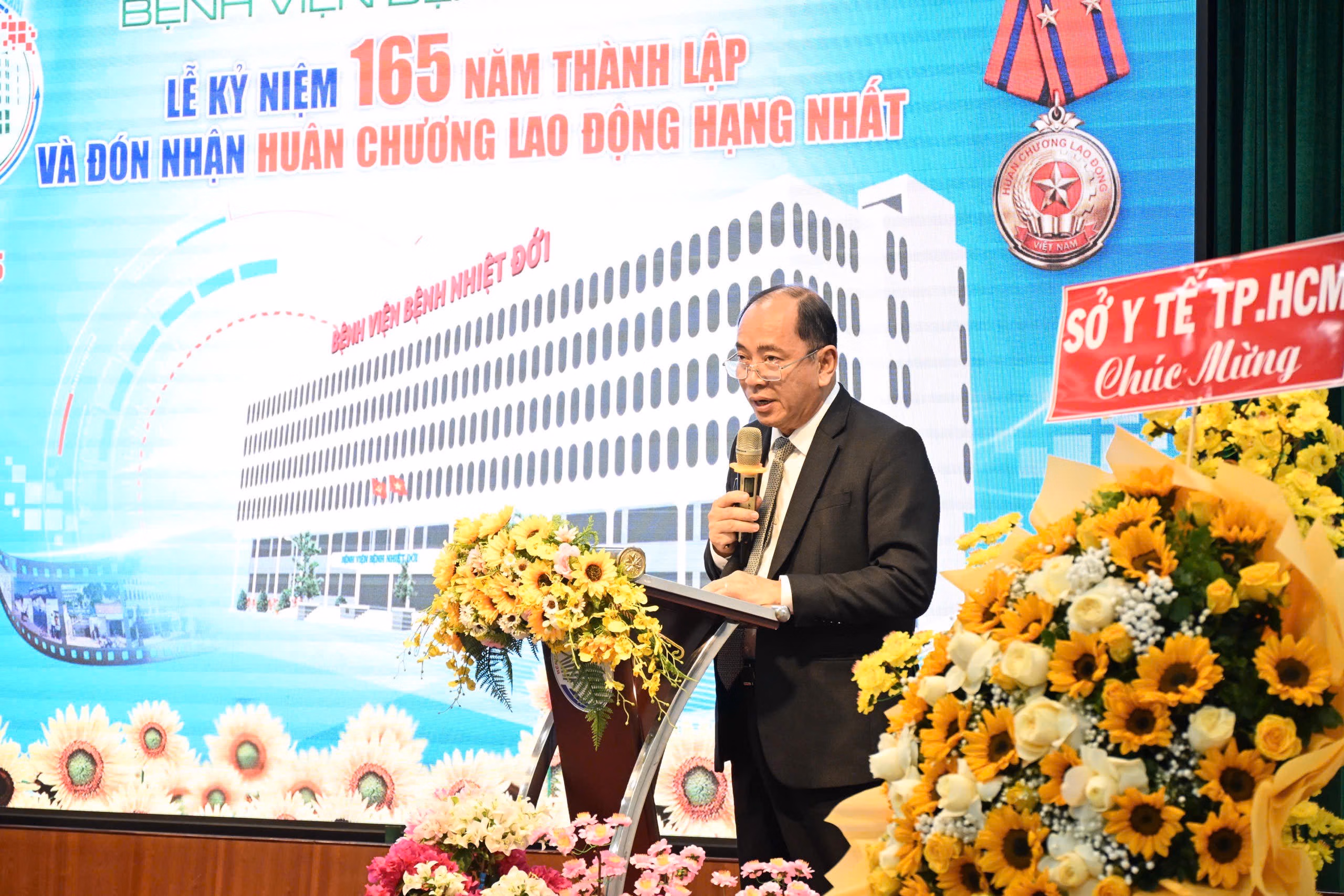 Phát biểu tại buổi lễ, BS.CKII Nguyễn Thành Dũng - Giám đốc bệnh viện cho biết: 165 năm là một chặng đường dài, Bệnh viện Bệnh Nhiệt đới từ Nhà thương Chợ Quán bên dòng Kênh Tàu Hủ đến bệnh viện chuyên khoa hàng đầu hiện nay.
