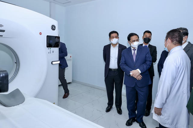 Thủ tướng Phạm Minh Chính thăm, làm việc, động viên đội ngũ cán bộ, bác sĩ, nhân viên y tế tại Bệnh viện Chợ Rẫy Phnom Penh - Ảnh: VGP/Nhật Bắc